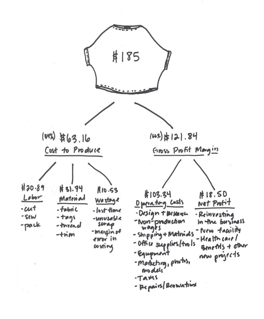 最后的对比才是最重要的:Everlane 定价 170 美元,传统零售商定价 425 美元。