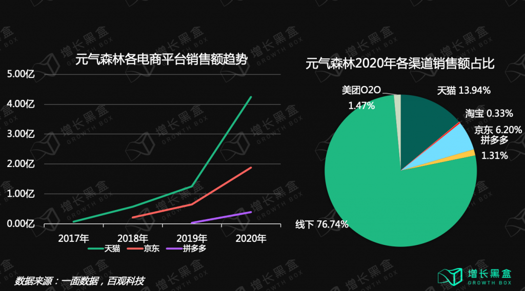 我与增长黑盒的小伙伴们花了两个月时间,梳理了一下当红饮料品牌元气森林在过去4年时间里的成绩 – 根据我们推算元气森林2020年在零售终端完成了超过25亿的销量。