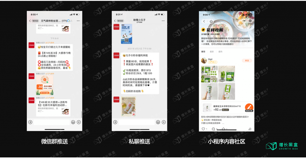 市面上分析元气森林营销策略的文章已经很多了,此处就不再赘述。但是,我们很想展开讲讲元气森林近期在快速布局的一个点:私域流量。
