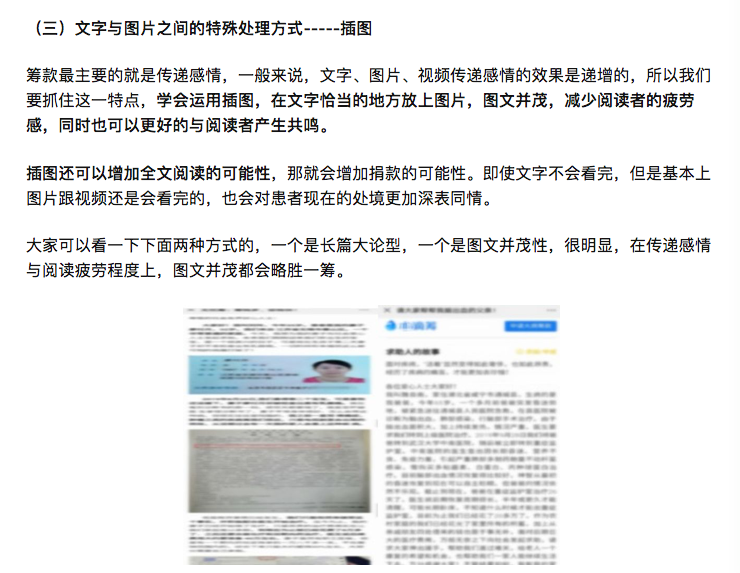 众筹金额的确认不必根据实际医疗费用和病患经济条件确定,地推人员还会提供筹款文案的标准模板,直接套用即可。在知乎等社交平台上,也能找到不少水滴“志愿者”撰写的详细攻略,教人们如何写出感人至深、催人泪下的筹款文案。