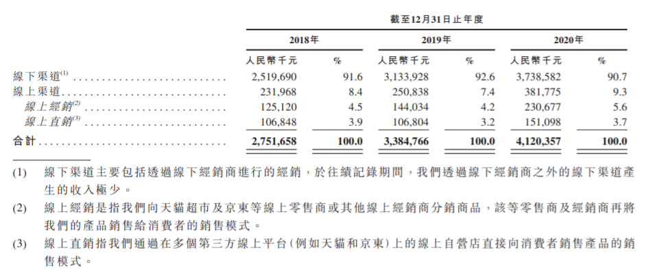招股书数据显示,卫龙的销售渠道目前仍然以线下的经销网络为主,截至2020年12月31日,卫龙和超过1900名经销商合作,覆盖超过57万个零售终端,约70%的零售终端位于低线城市。这张庞大的经销网络是卫龙被输送到全国的毛细血管,是生意的底盘。