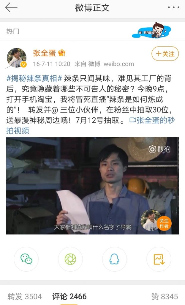 很难说这些设备从质量和效率上到底提升了多少,但至少从营销推广上来看,这些对生产安全关注的动作,让卫龙在辣条江湖里显得与众不同起来。2016年,卫龙打造了淘宝直播节目《辣条是如何炼成的》,目的就是为了让辣条的生产过程透明化,高峰时期直播间观众人数能达到20万人。刘卫平还邀请自媒体进入工厂,拍流水线、洁净车间、质检车间。这些干净卫生的照片上传至微博后,短短18个小时就获得上100万+的阅读量。