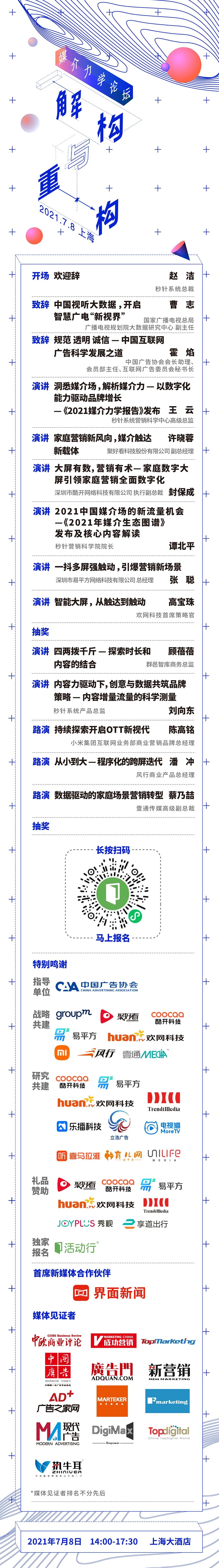 在中国广告协会的指导下,我们将基于“媒介力学”概念框架,于7月8日在上海举办第二届“媒介力学论坛”。论坛将发布联合行业力量出品的最新《2021媒介力学评估与发展报告》,并为营销科学工作者带来理论参考与实战分享,帮助解构动态变化的营销环境。2021年7月8日(周四),14:00 – 17:30