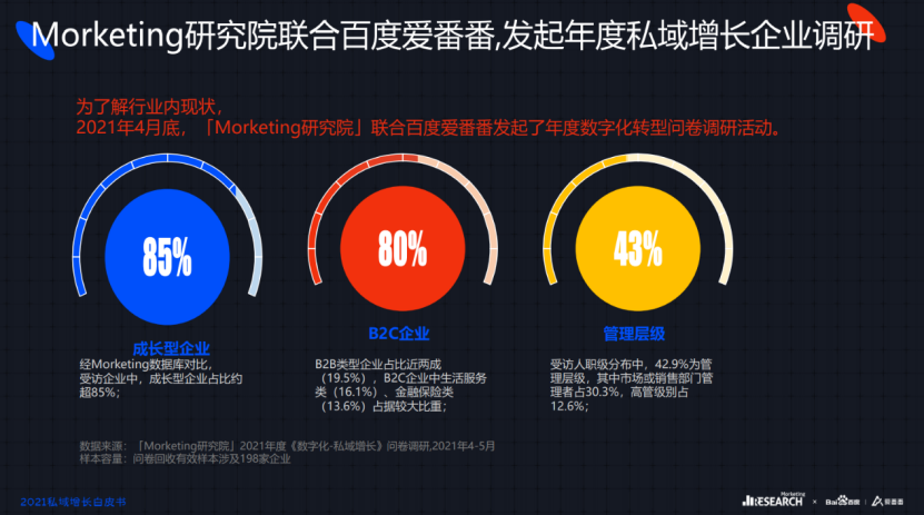 5月27日,「Morketing研究院」于“爱增长·AI营销”主题发布会现场,与百度爱番番联合发布《2021私域增长白皮书》,为企业解私域之“惑”。