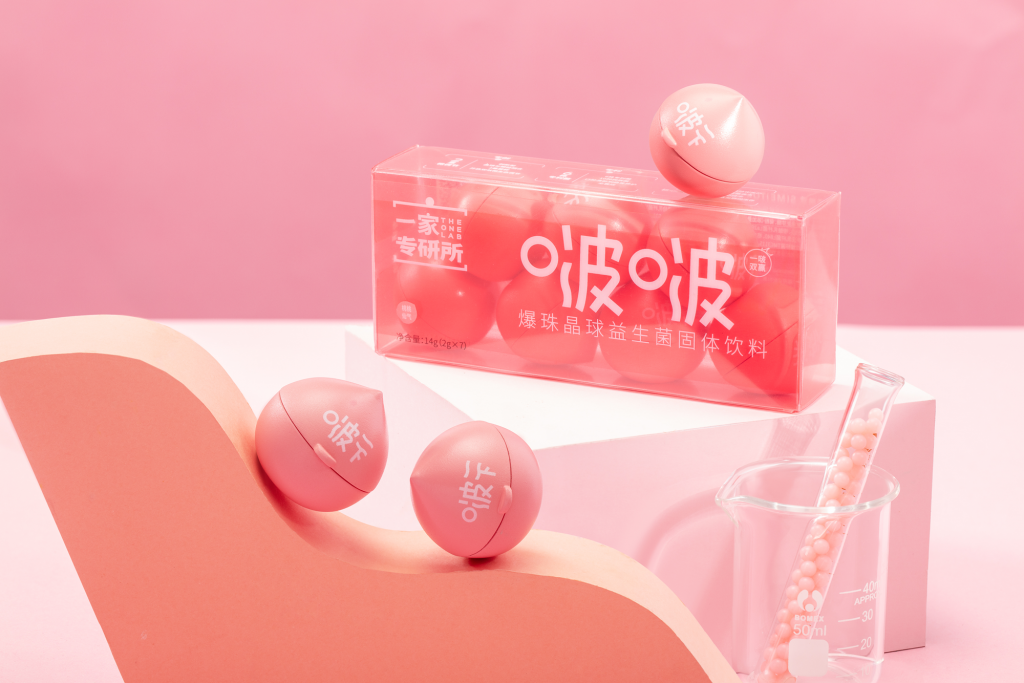 目前,市面上热门的益生菌品类中,存在产品功能单一,产品形态老化,体验感不好,缺少新意等问题。由此”一家专研所”反其道进行标新立异,坚持以功能满足消费者的基调,推出首款主打标治口腔,本调肠胃的“啵啵爆珠晶球益生菌固体饮料”,通过创新的包装形态和五感体验,“啵啵爆珠晶球益生菌固体饮料”弱化了消费人群对老品类的认知, 顺应年轻新世代消费者的认知,创建了全新的口腔益生菌子品类。