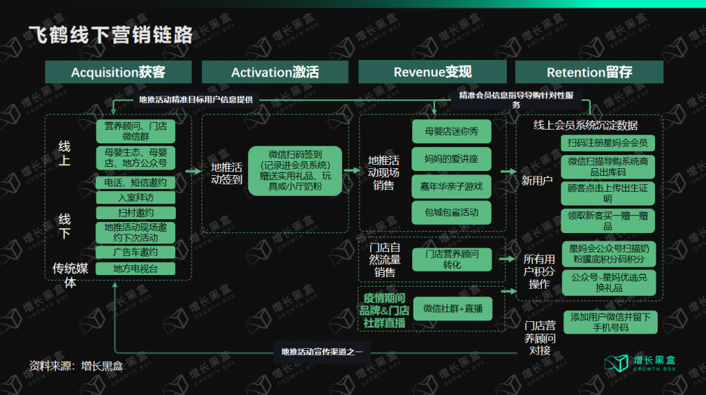 那么,飞鹤是如何做到如此高频、高效的进行地推活动,且将其转化成有效的用户购买乃至复购呢?用一个公式总结起来就是: