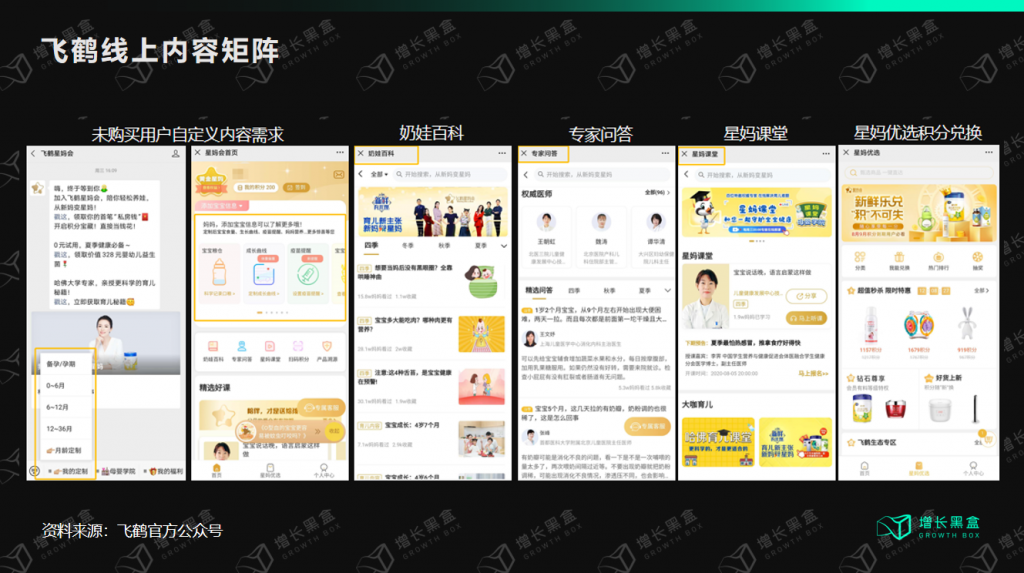 在微信生态中,飞鹤有一个神秘的公众号——“星妈会”,它为飞鹤搭建了完善的会员体系,是串联起自身渠道并实现留存和复购的重要方式。