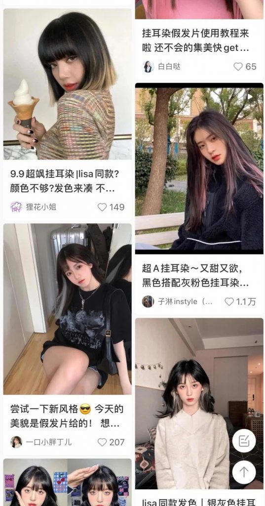 “杀马特”曾在上世纪八九十年代的年轻人中风靡,如今Z世代疯狂调侃“杀马特”的同时,不知不觉又步入另一场狂欢。小红书上,年轻人对偶像蔡徐坤、刘雨昕以及韩国女团BLACKPINK的发色趋之若鹜,“Lisa同款”“神仙发色”拥有超高热度。可以佩戴的假发片也是甜酷女孩最爱的单品。