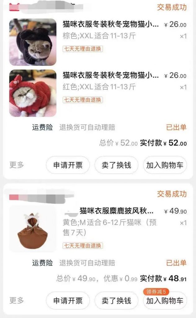 几位铲屎官对深燃总结自己买过最多的宠物用品,大都提到了玩具和衣服。“衣服种类太多了,抖音上总有穿着好看小衣服的猫猫狗狗,说不动心是假的。”铲屎官菲菲表示,给猫买衣服像给她自己买衣服一样冲动。