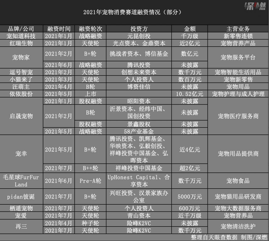 这些五花八门的养宠需求,延伸出了巨大的生意,并引起了资本的关注。