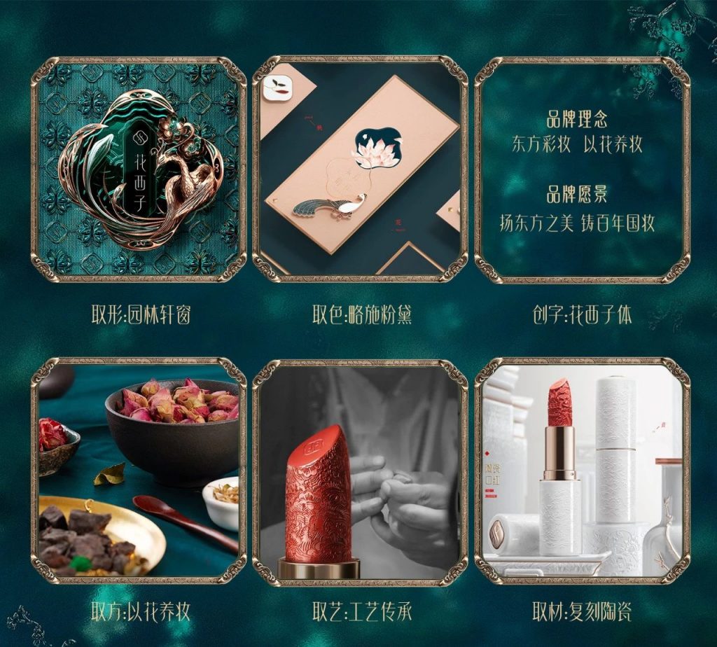 在花西子对外的公开的介绍中,我们可以看到花西子将自己定位为东方彩妆,根植于中国传统文化,在品牌的各维度搭建全新的“东方彩妆”体系。
