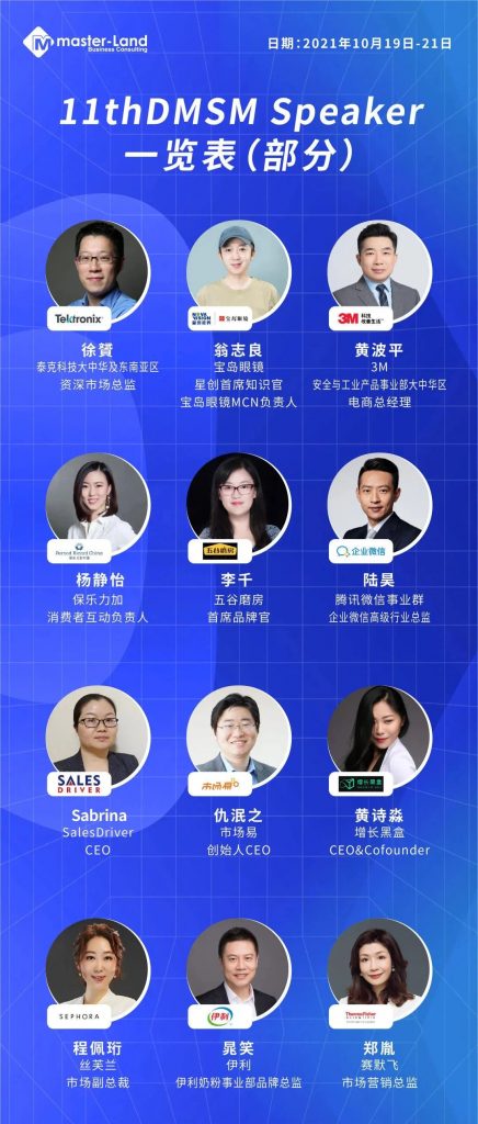 会议邀请到来自B2C领域:丝芙兰/明月眼镜/伊利/五谷磨房/飞利浦;B2B领域:泰克科技/帝斯曼/艾默生/3M 等数十加头部企业数字化转型领袖和营销专家,分享具有战略前瞻性和敏锐洞察力的企业内部最新数字营销策略和方法。