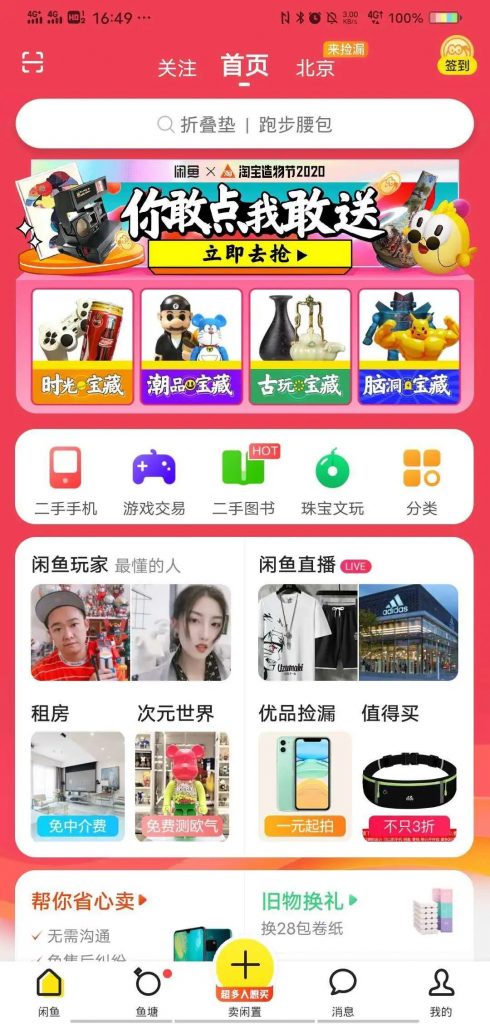 但是,我们打开今天的闲鱼,能够发现,首页上,除了普通用户推出的”闲置物品”之外,还有游戏账号,演唱会门票。现在更是有文玩珠宝,租房等各种,很难称之为“物品”的商品。
