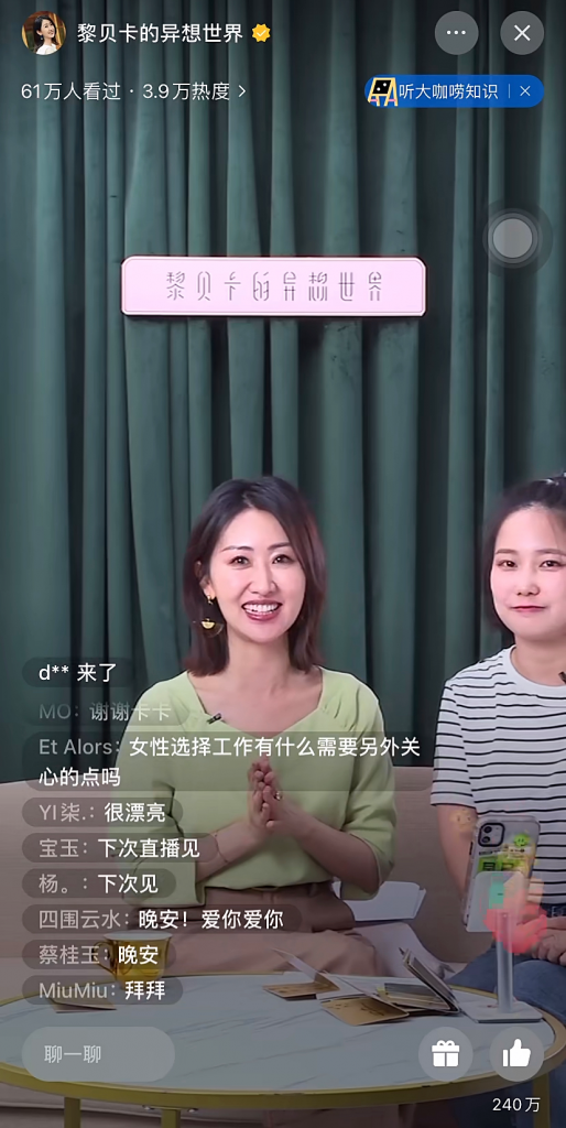 正如黎贝卡所说,“直播是一个窗口”,直播让创作者们开始从幕后走到台前,直接与粉丝面对面。“直播没有充分的时间来包装,也无法做后期的剪辑和打磨,这对所有人来说都是挑战,但更贴近生活、更加真实,这是图文形式难以做到的。”黎贝卡表示。