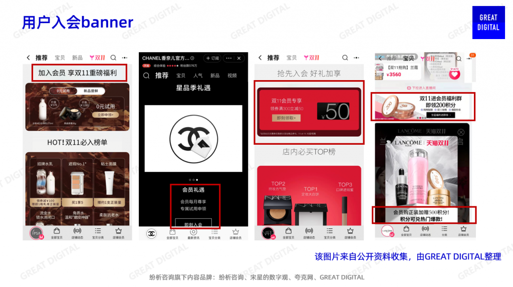 于是,出现了一个奇异的景象,即便是双十一大促,品牌商家也仍然把入会banner保留在更大,更前,更显眼的位置,至少在淘系,这是目前对于大部分品牌商家,仍然可以获得消费者信息的方式。