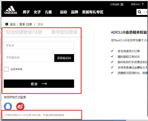 同样,打开官网,在登录页面出现了入会提醒,和阿迪达斯并无不同。