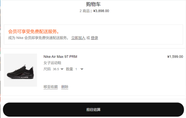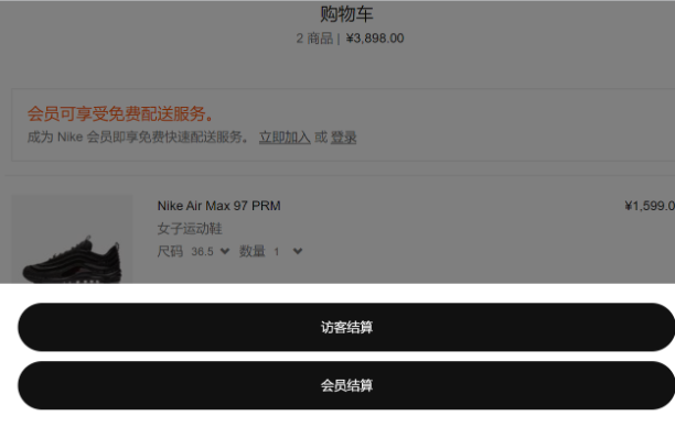 到了购物车环节,出现第二次入会提醒,用橙色突出,以会员可享受免费配送服务作为诱饵。