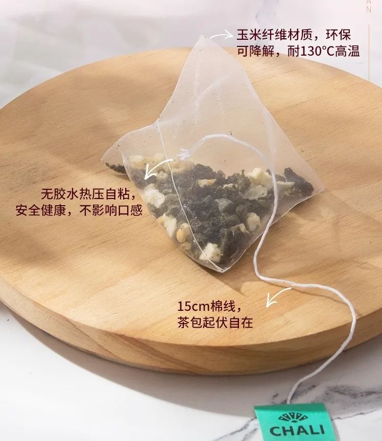 CHALI茶里这些新品牌,做的大多是三角原叶茶包。也就是三角形的茶包,透明的,里面是整片的茶叶,而不是被切碎的茶末。
