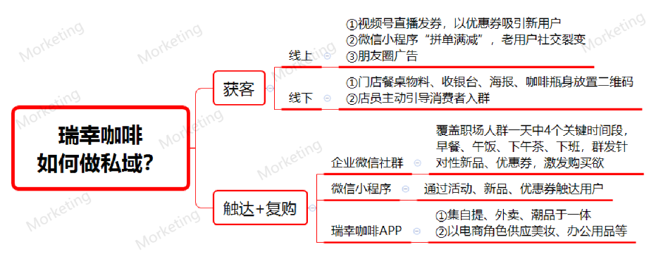 接下来,Morketing将围绕新客获取、持续触达、复购经营3个维度,来进一步详细拆解瑞幸咖啡的私域玩法。