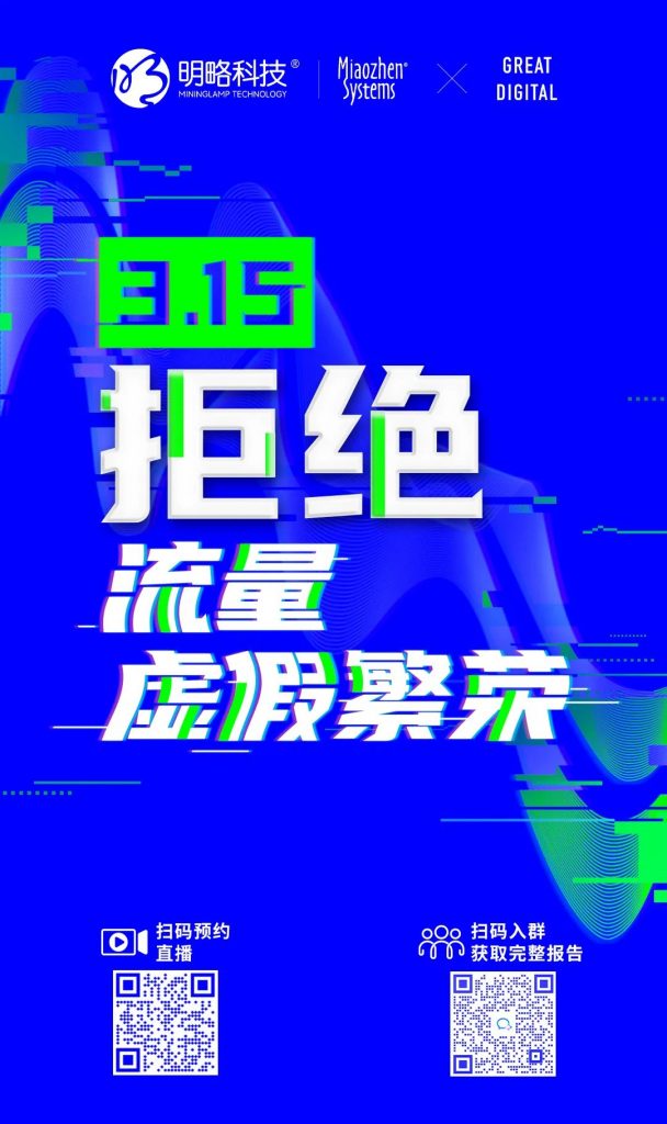3·15当天,秒针系统将举办线上发布会,发布《2021中国异常流量报告》,呼吁营销生态各方携手共促流量透明,共建清朗营销生态。