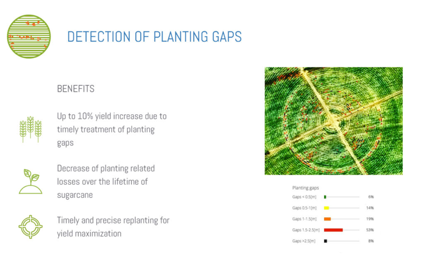 瑞士的agtech创业公司Gamaya跨越了无人机和人工智能的世界。该公司成立于2015年,已融资约400万美元。这家初创公司开发了一种特殊的高光谱相机,可以在无人机上飞行。人眼或你的普通数码相机可以使用三波段的电磁波谱,而高光谱相机可以使用许多窄带来创建图像,提供肉眼无法看到的细节。Gamaya相机有40个光谱通道。然后,经过算法处理数据,提供对作物健康的见解,这些数据可能会受到疾病或干旱等问题的影响。下面你可以看到它在甘蔗地里反馈了作物的差异。