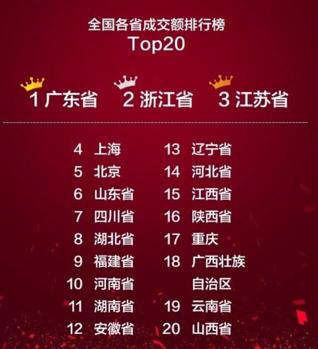 11月13日 天猫公布双 11 大数据:江浙沪成交额领跑全国