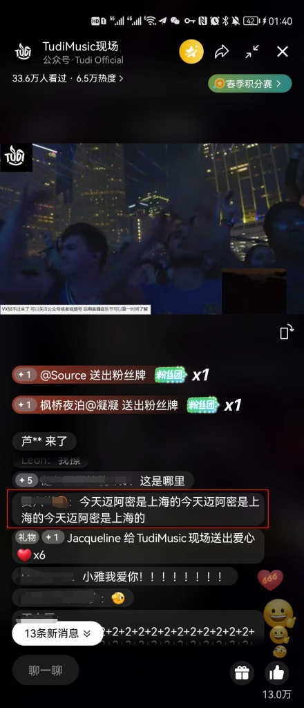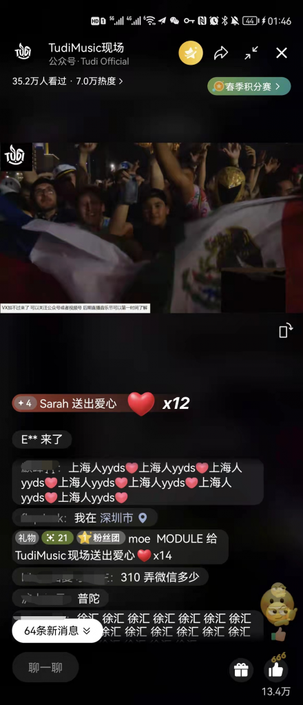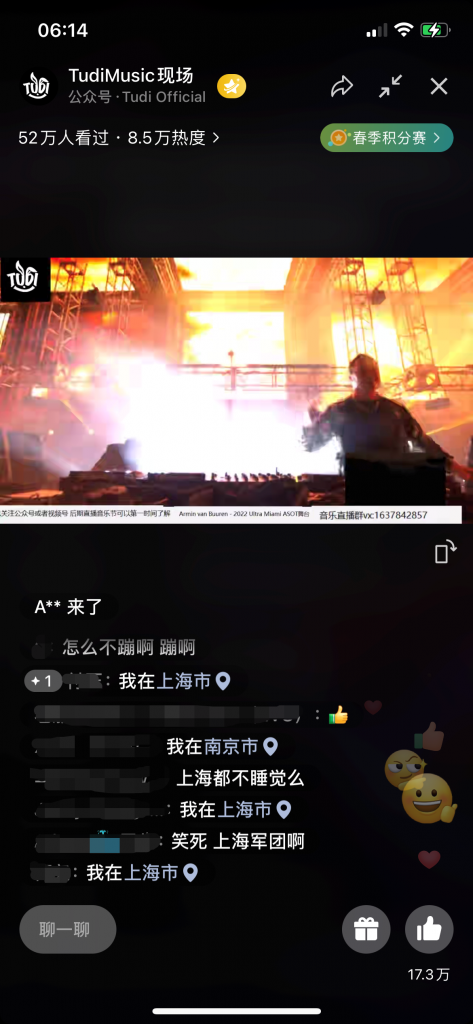 但也是此时,本该是平常且普通的一次直播活动,随着定位在上海的观众陆陆续续加入,一切都变得魔幻起来。