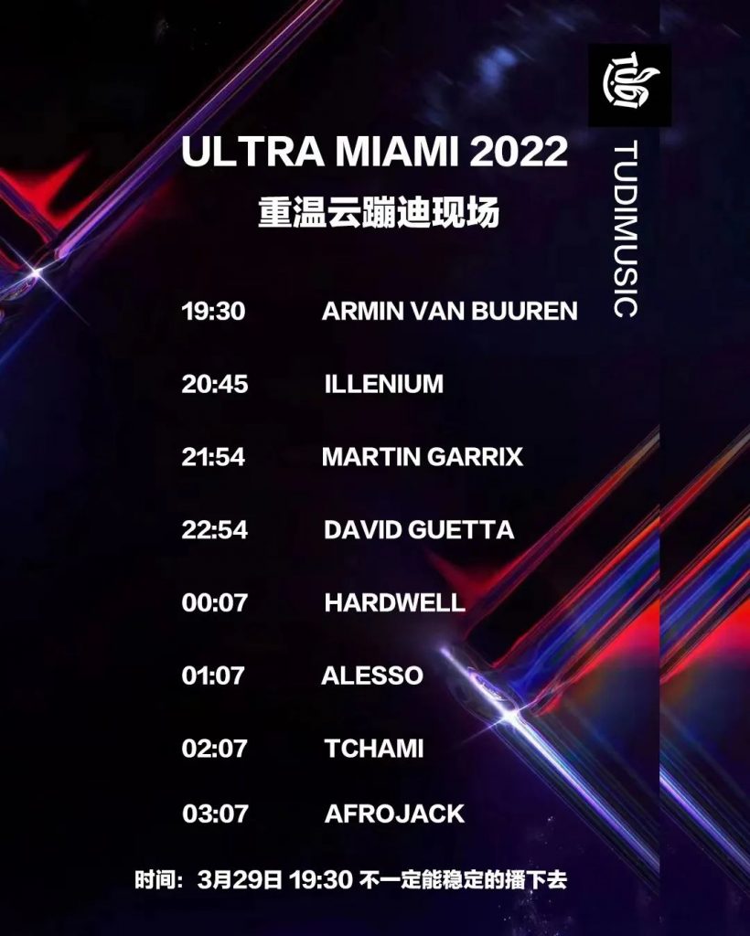 为了照顾周末没能赶上Ultra Miami线上直播的乐迷朋友,TudiMusic现场 在视频号上开始了“重温云蹦迪现场”的直播。
