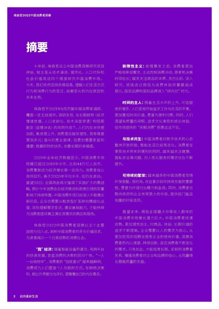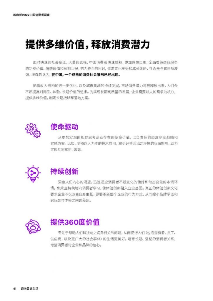 埃森哲的消费报告从以下五个方面进行了阐述,包括“我”经济(自我意识崛起),新理性主义(理性回归,注重意义感),时间的主人,与技术共生和可持续的繁荣。更多细节,请下载查阅报告具体内容。