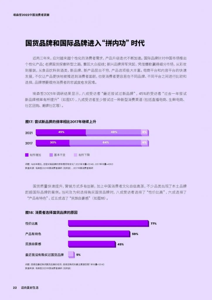 我们从报告中还发现了一些有趣的现象。对比2017年,中国消费者更难“伺候”了。第一点是消费者购买产品开始更多考虑实用性,并非冲动消费,消费行为更加成熟。对于那些不知所云的高级“PPT”新品牌,可能要特别注意了。618也只是去买本来就需要买的东西。第二点,消费者更加“Jumpy”,更愿意去尝试新品牌,对比2017年(30%)发生了大幅度提升(45%)。那品牌赖以生存的复购率如何应对?第三点关于国货品牌。别想太多,也别带太多高帽子,根据报告,消费者选择国货品牌的最主要原因是“性价比”(77%)。其次是产品特色 (59%),而后才是民族自豪感(45%)。因此,需要理性看待国货品牌的真实购买动因,而非无脑夸大某些因素。