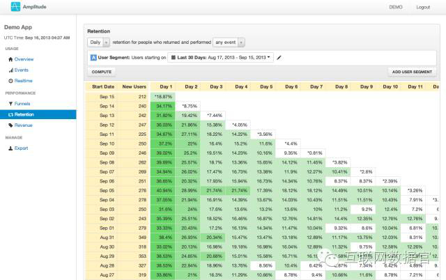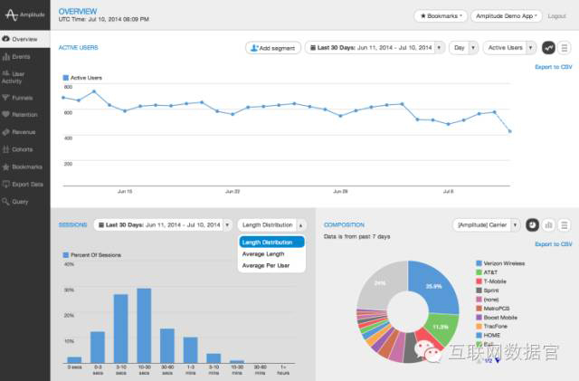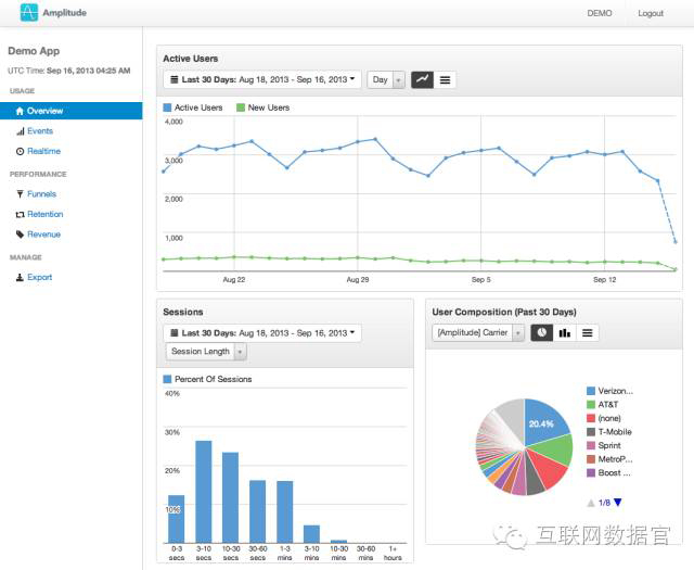 Amplitude和Mixpanel一样,聚焦在App用户行为分析与APP运营增长数据分析的实用型解决方案,它在短短三年时间内获得了超过2600万美元的投资,以及每年超过300%的收入增长率和超过150个企业级的付费用户。对于一个纯互联网数据解决方案公司,这是一个了不起的成绩。