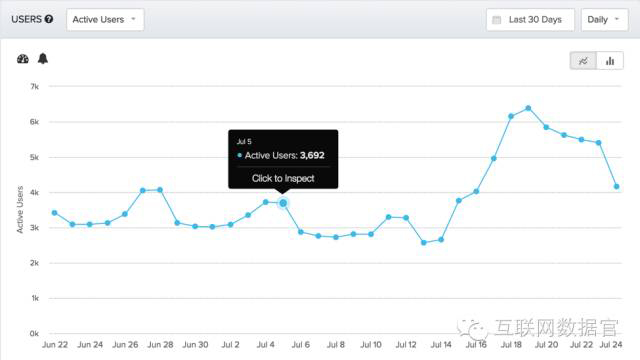 1. 更好的细分能力,被他们称之为“microscope(微范围)”。也就是在任何一个数据点上,都可以往下进行下钻。而不需要特别到某个具体的报告中。比如下图中的某一天的数据,你可以直接点击这个数据点,然后进入更细节的关于这个数据的具体细分属性或功能中去。