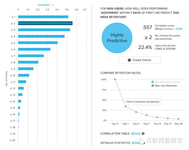 图:这个报告说明了“加好友”行为与用户留存之间的相关性