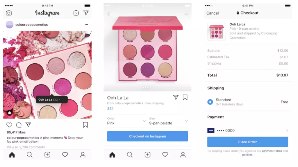 Instagram在2019年上线了checkout新功能,允许用户看图直接下单