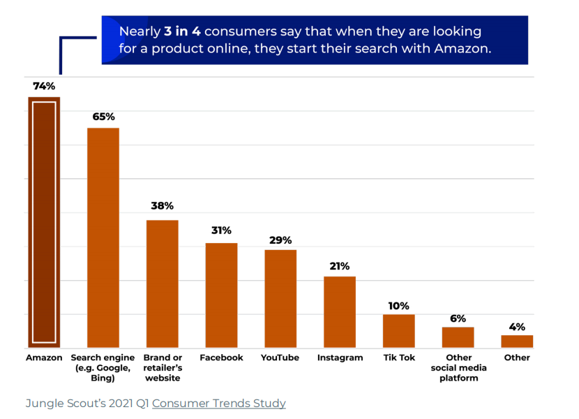 而当消费者在网上购物时,他们在哪个平台进行搜索?