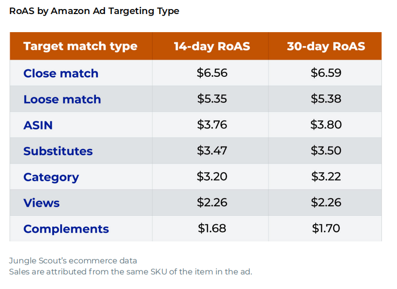在14天和30天的时间内,接近匹配的广告目标产生了较高的RoAS。需要提醒的是,广泛匹配的广告定位类型往往比接近匹配的广告具有更低的CPC。