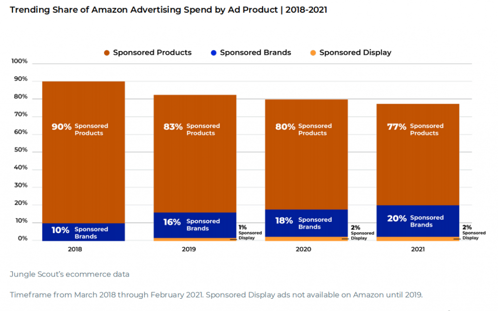 赞助展示广告于2019年11月首次推出,并持续受到欢迎。与此同时,赞助品牌广告经历了一些变化,这可能是它们被更多用户接受的原因之一。该广告产品最初只是供应商工具,随着时间的推移,逐渐获得广泛推广。现在,任何拥有品牌注册权的人都可以获得赞助品牌广告,并有更多的植入机会。