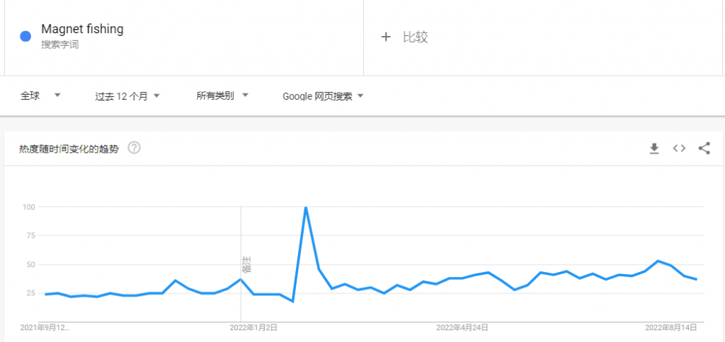 从谷歌的搜索趋势显示,磁力钓鱼的搜索量于今年年初突然飙升,呈现出爆发之势,其后虽然搜索数据有所回落,但却仍保持着持续稳步上升的态势。