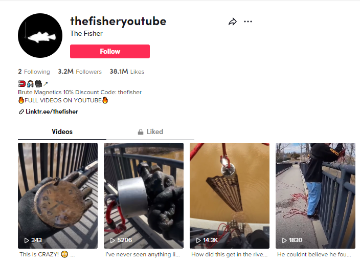 TikTok 账号 @thefisheryoutube 最初是一位油管的博主,自2020年开始创建了钓鱼磁铁频道视频后,一年内在油管的粉丝量增长了 50 多万。