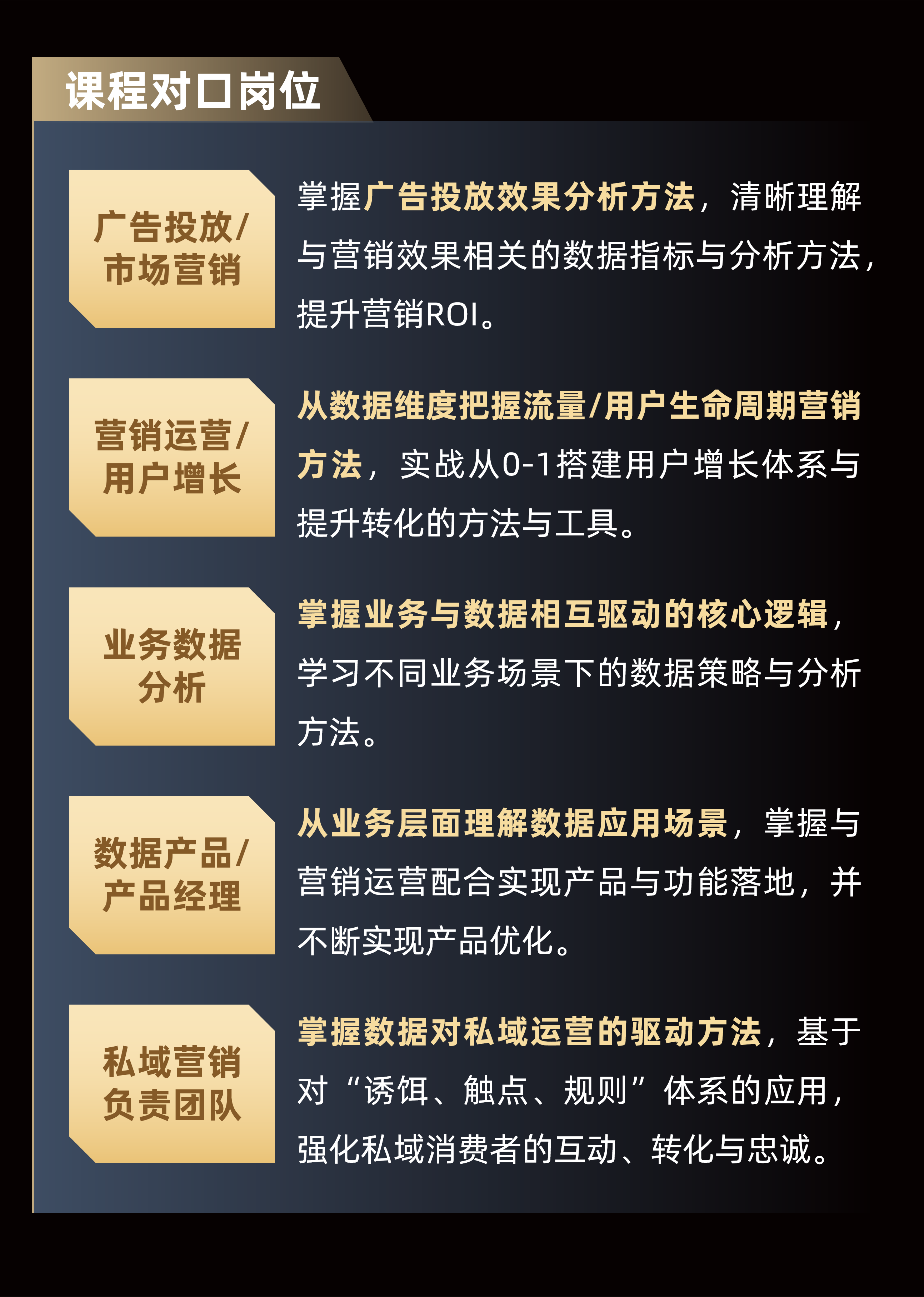这门课程受到欢迎的背后,是从业者对数据领域的普遍焦虑,以及市面上系统性讲解数据在营销领域应用知识的体系化课程的匮乏。