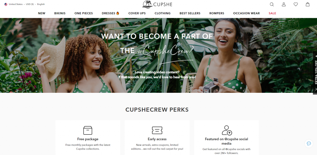 更特别的是,除了在网络上寻找KOL达成合作,CUPSHE还在自家官网上推出了“Ambassador Program”的KOL推广项目,吸引网红主动寻求合作。