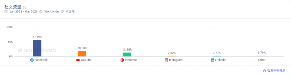 作为泳装快时尚品牌的CUPSHE自然不会放弃在社媒上的布局。据Similarweb数据显示,CUPSHE在Facebook、YouTube、Pinterest、TikTok、Instagram、Reddit、LinkedIn均有所动作。尤其是Facebook流量占据57.69%,无疑是CUPSHE布局社媒的主阵地。