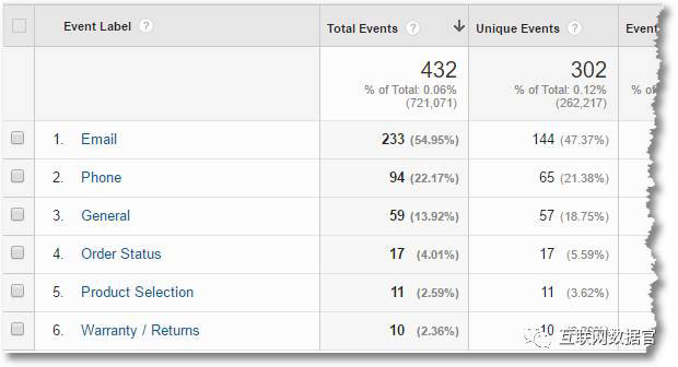 尽管我们没有看到任何事件价值,但是你可以将触发事件的访问次数与网站的结果结合起来。这些数据在很多案例中都非常的有帮助,比如,当你对一些特殊的内容、富媒体、交互元素、外链、商业策略等进行投资的时候,这个报告的数据就可以帮助你迅速做出更明智的决定。
