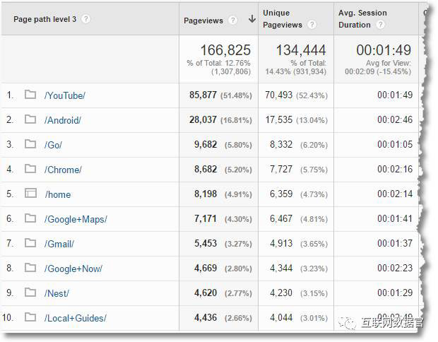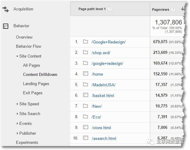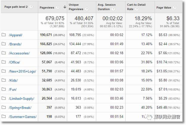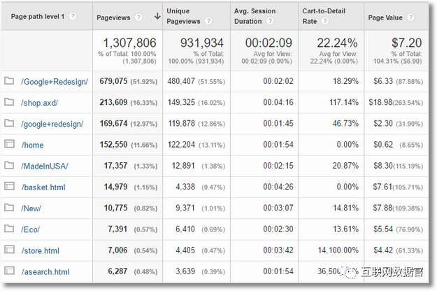 从文件夹层级的角度来看,这些数据的确为我们提供了一些有洞察力的报告,而且可能甚至看起来完全没有什么道理。思考一下,一个文件夹的跳出率有什么作用呢?