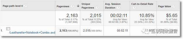 这是我自己创建的一个比较好用的自定义报告,里面有平均页面停留时间、商品详情页到购物车的转化率(因为这是一个电商网站)和网页价值(这样就可以在页面层级获得电商和目标价值)。