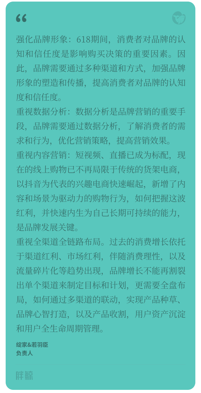 - 在大促期间,如何去平衡价格曲线和品牌价值变得更为重要,大促容易赢,而品牌价值不是一两日能够塑造起来的。