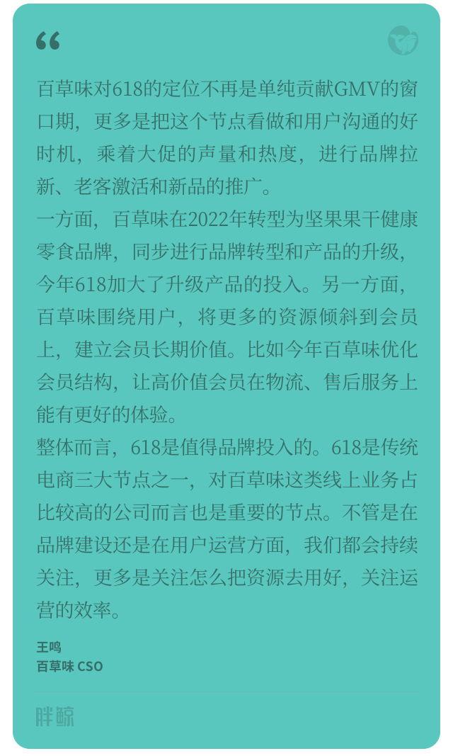 - 对618的定位不再是单纯贡献GMV的窗口期,更多是把这个节点看做和用户沟通的好时机,乘着大促的声量和热度,进行品牌拉新、老客激活和新品的推广。