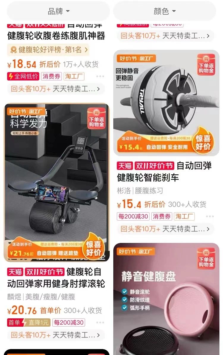 但选购健腹轮这件小事,让他犯起了愁。“便宜的怕耐用性差,贵的又觉得没必要。”在纠结的过程中,室友向他推荐了淘工厂。