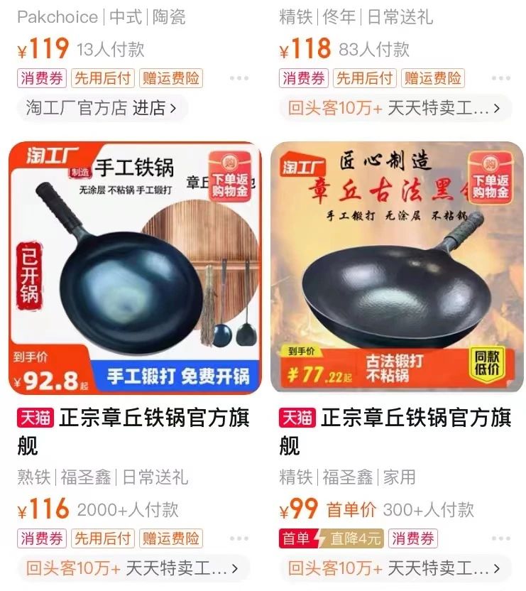 “有过过往惨痛的教训,下单前我还留了个心眼,去看了下商品的数据和评价,我看上的那款锅,在详情页上就标明了‘回头客10万+’,评论区的用户反馈也不错,最终我花了不到100块,拿下了正宗的章丘铁锅,到现在已经用了快一年多了。”Alisa说道。