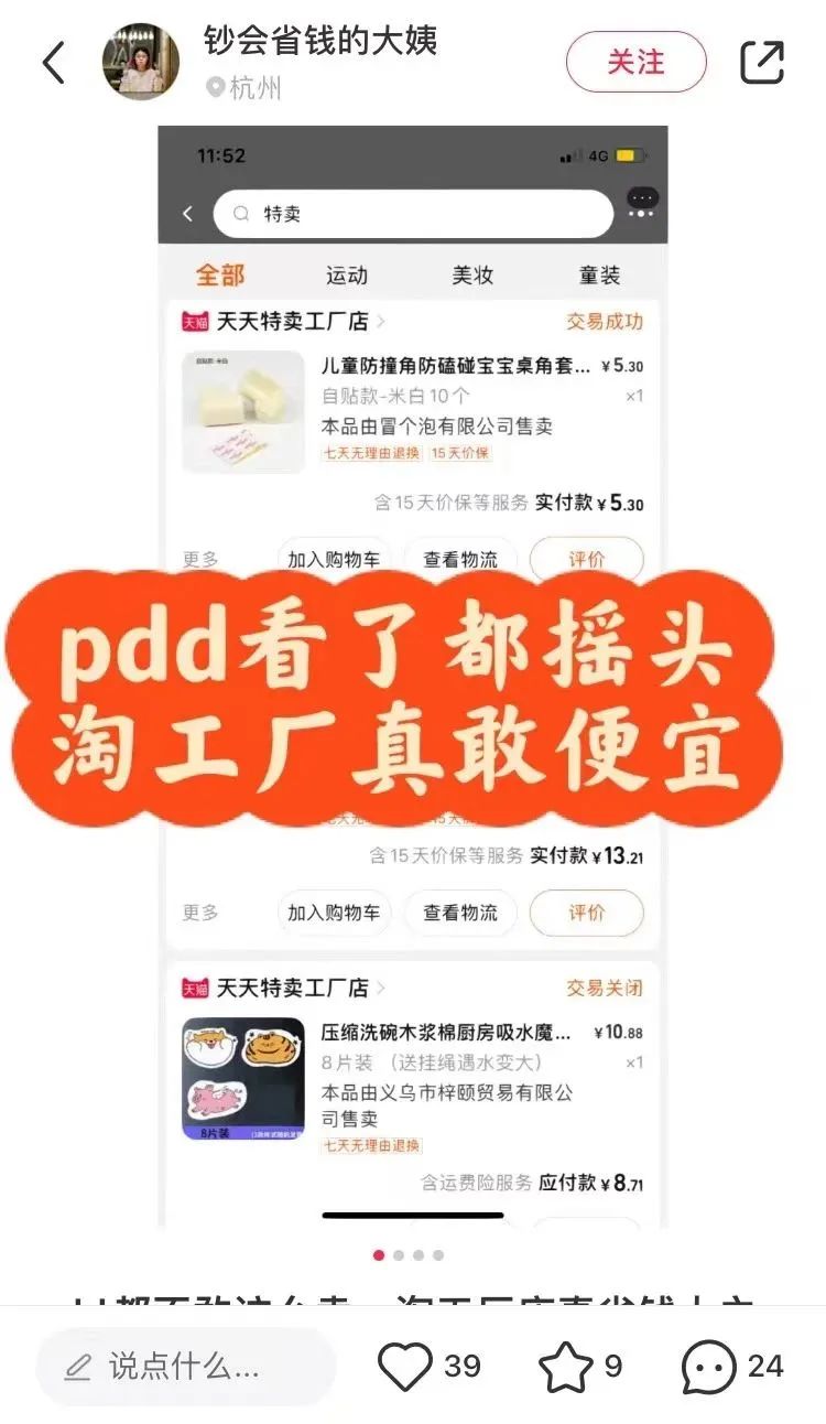 淘工厂,在性价比上如此的“卷”,也难怪有小红书用户会喊出那句,“pdd看了都摇头,淘工厂真敢便宜”。